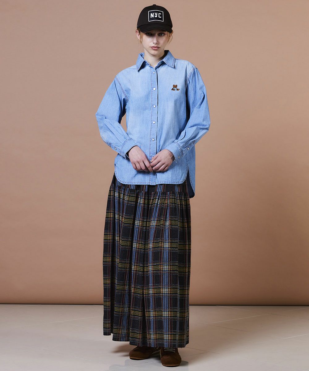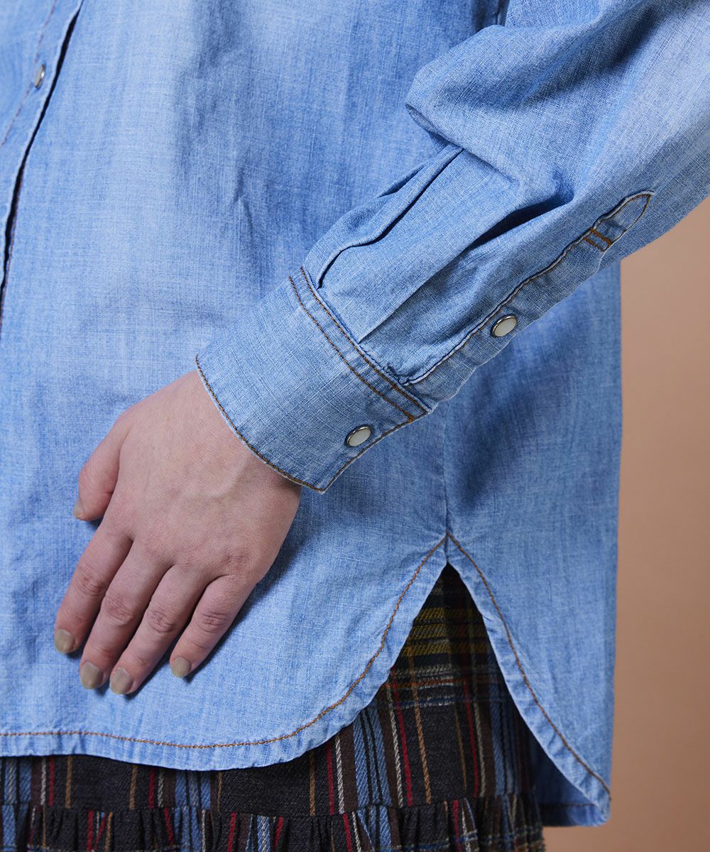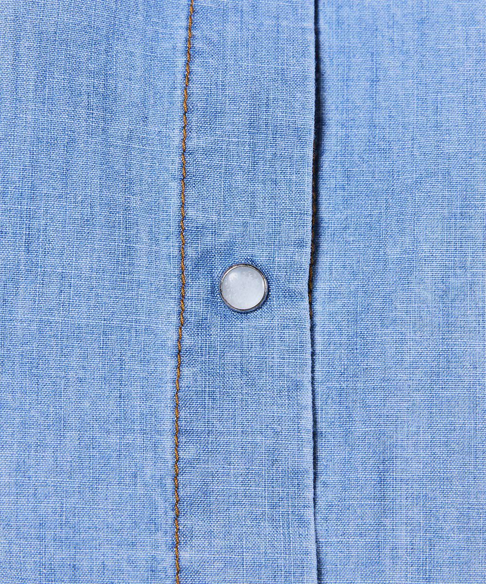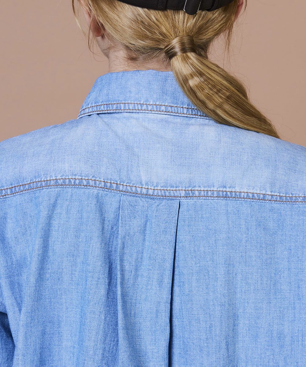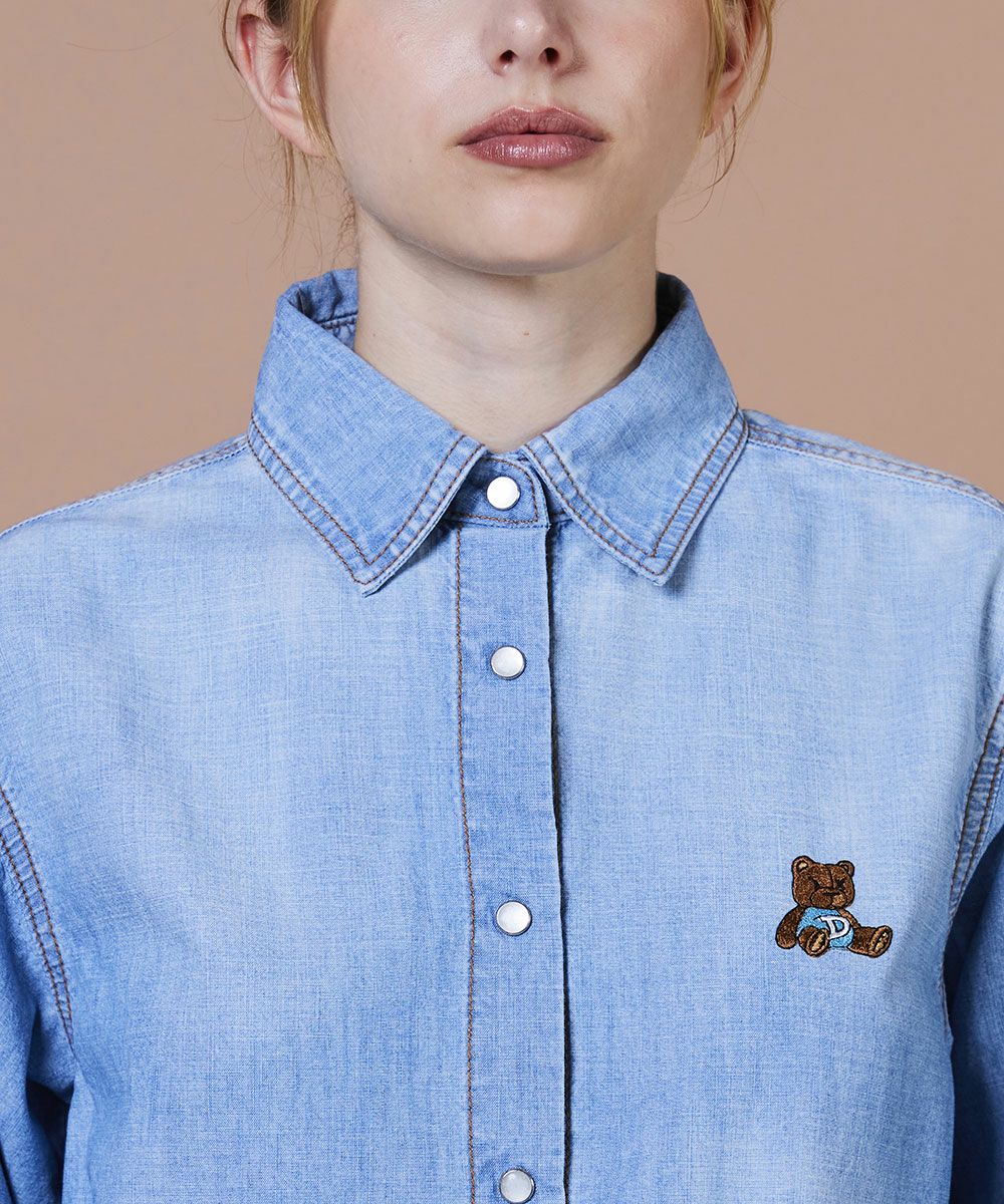빈티지한 느낌이 매력적인 데님 셔츠. 가볍고 통기성이 좋은 샴브레이 원단에 수작업으로 정성스럽게 색바램 가공을 하여, 리얼한 사용감을 표현했습니다. 가슴부분에는 오리지널 캐릭터의 자수를 장식해, 장난기를 플러스. 심플하면서도 존재감 있는 한 장은, 한장만 입기에도 좋고, 걸쳐입기에도 활약하는 착용력이 높은 아이템입니다.