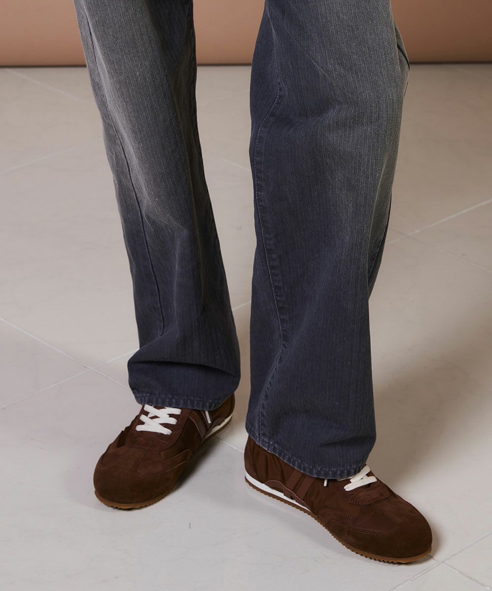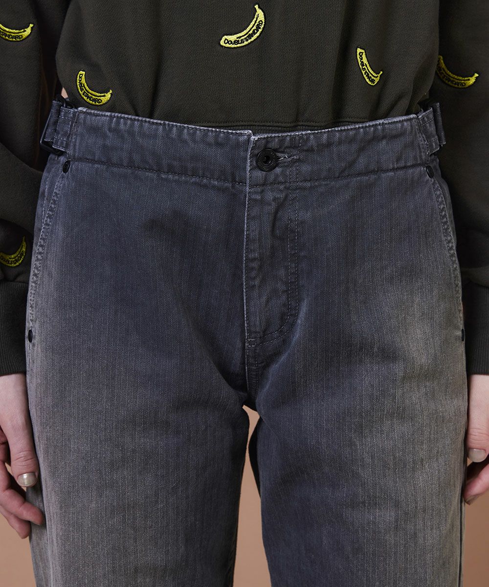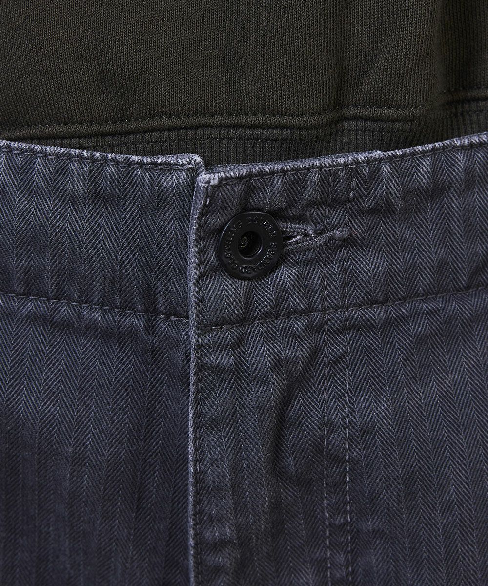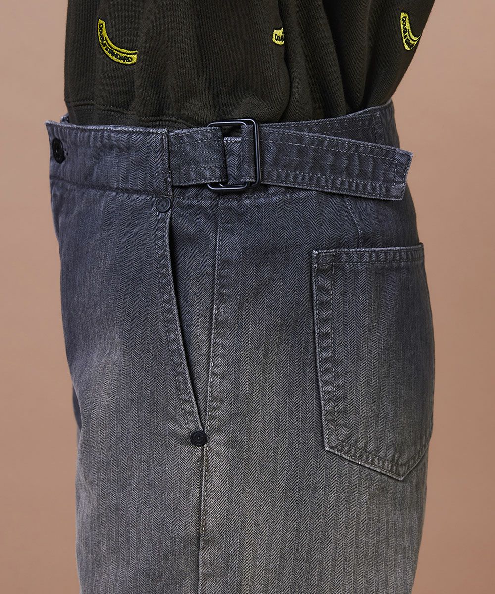 짜임이 아름다운 헤링본 원단을 사용한 팬츠. 하나하나 수작업으로 가공하여 빈티지한 느낌과 깊이감이 있는 대비로 마무리했습니다. 너무 캐쥬얼하지 않고 예쁘게 착용할 수 있는 것도 포인트. 스웨트와 함께 세련된 러프 스타일에, 셔츠와 함께 깔끔하게 입는 것도 추천합니다.