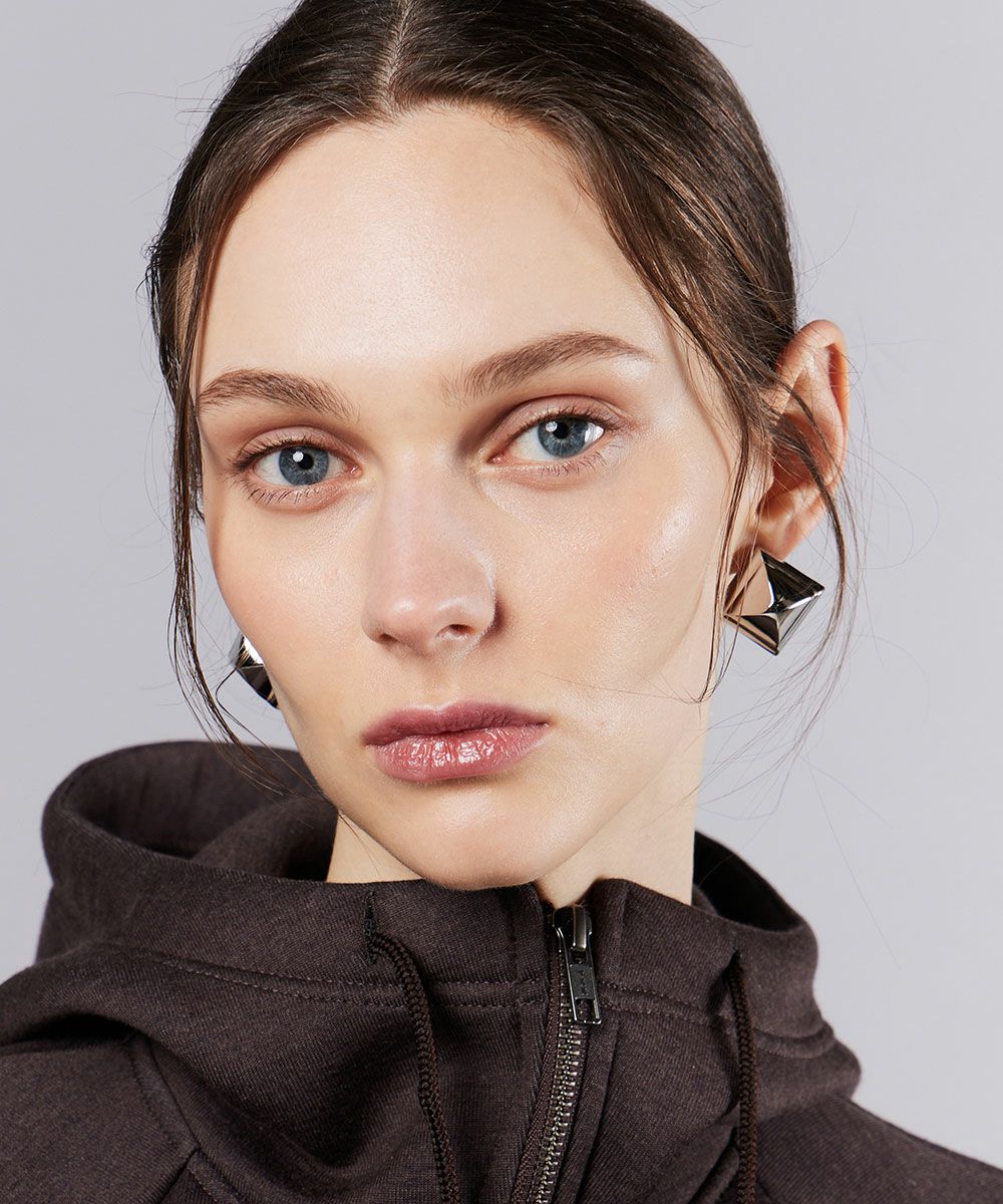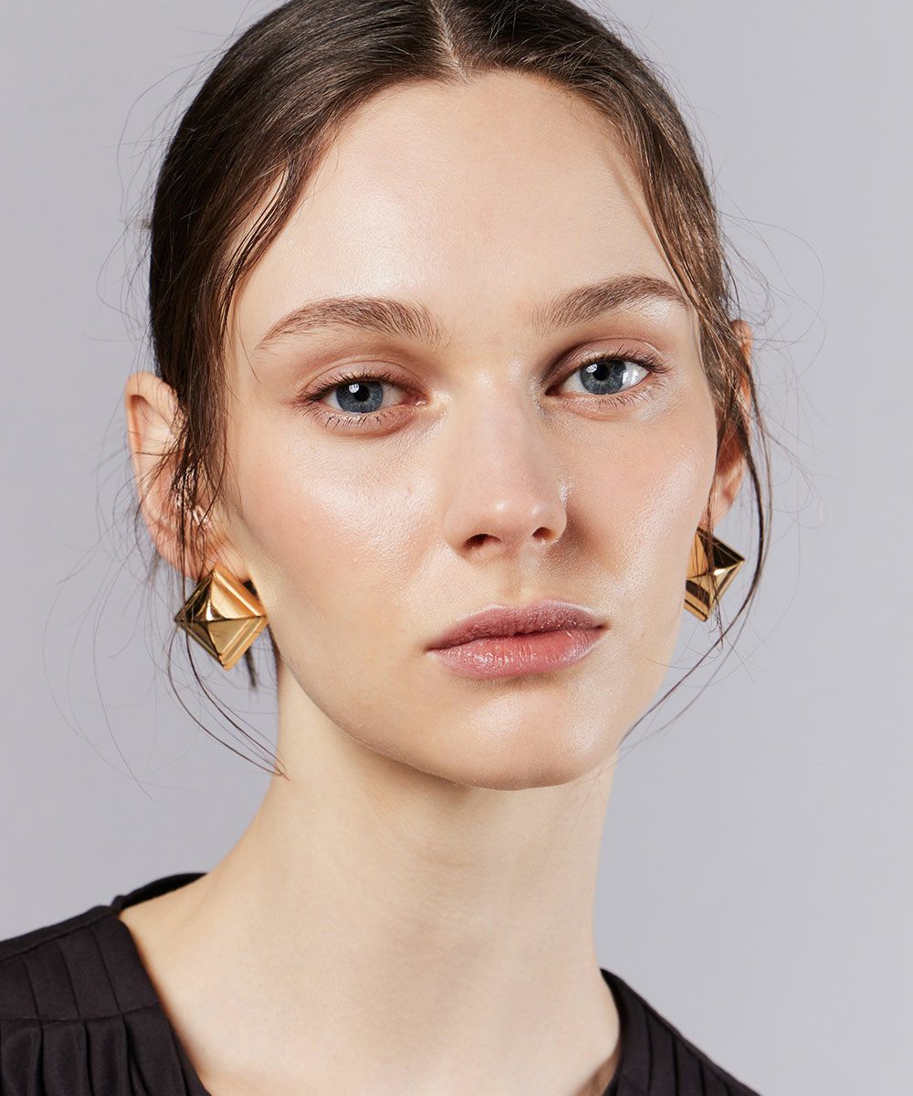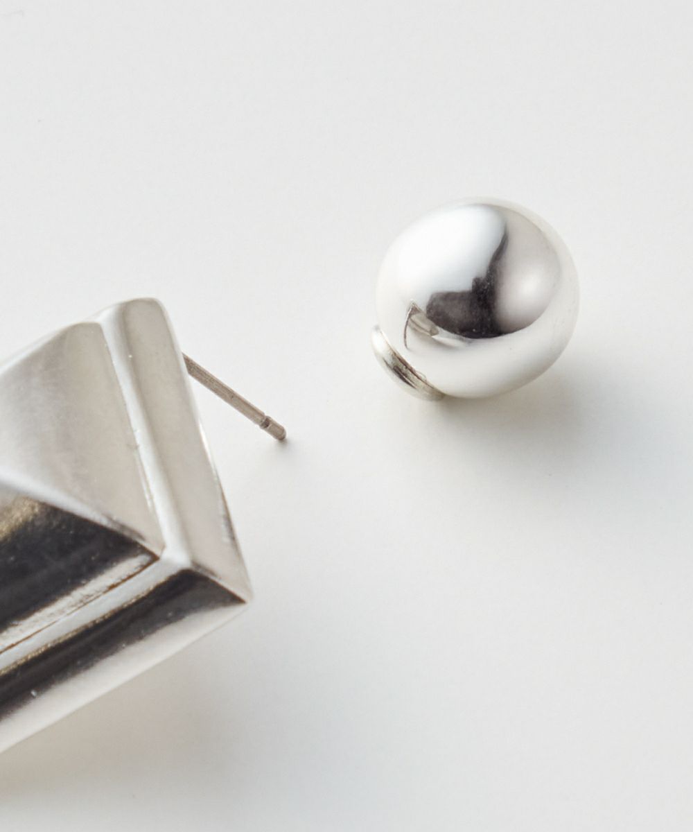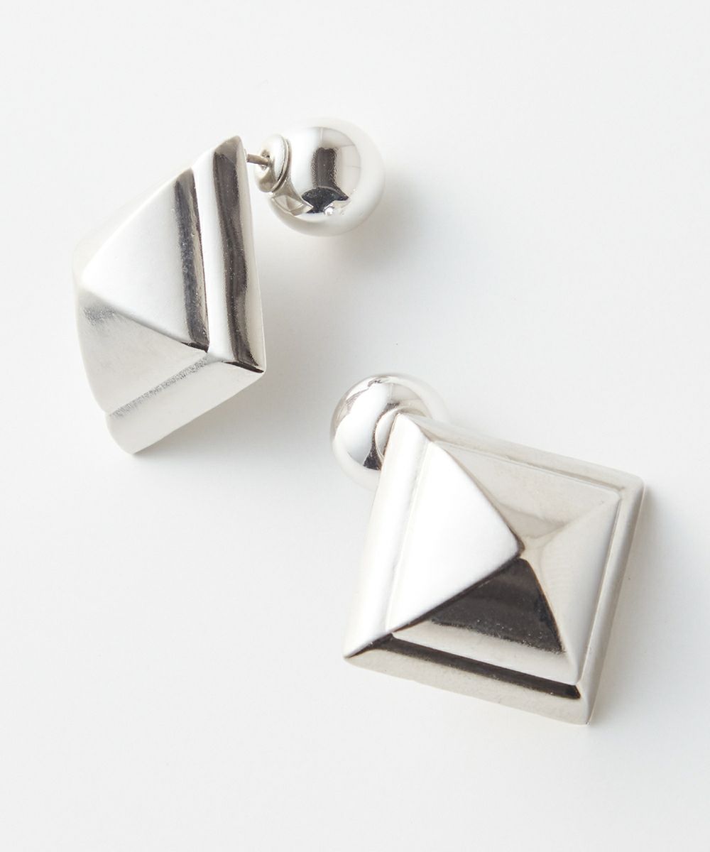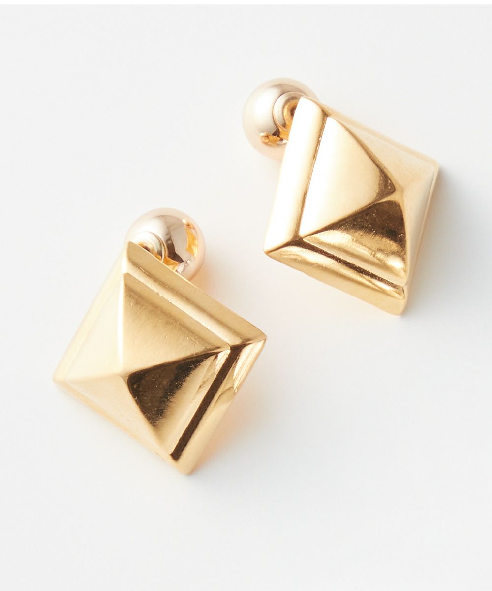 메탈릭한 빛남과 입체감이 인상적인, 큼직한 스터드 피어스. 오리지널 금형을 사용하여 만들어진 스터드는 2단 사양의 피라미드형 디자인으로 존재감이 탁월하게 완성되었습니다. 겉모습의 임팩트와는 달리 가볍고 장시간 착용해도 귀에 부담이 가지 않는 것도 좋은 포인트. 뒤에는 메탈볼 캐치로 어느 각도에서 봐도 스타일리시한 인상의 아이템입니다.