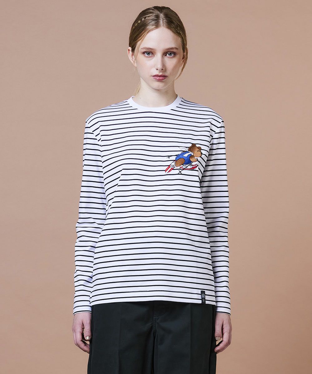 DSC / 수피마코튼 베어자수 보더 롱T