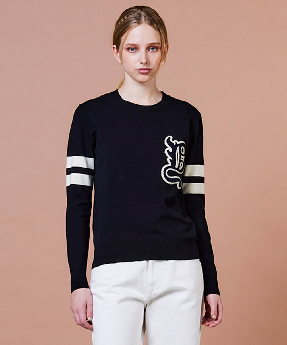 DSC / D로고자수 니트풀오버