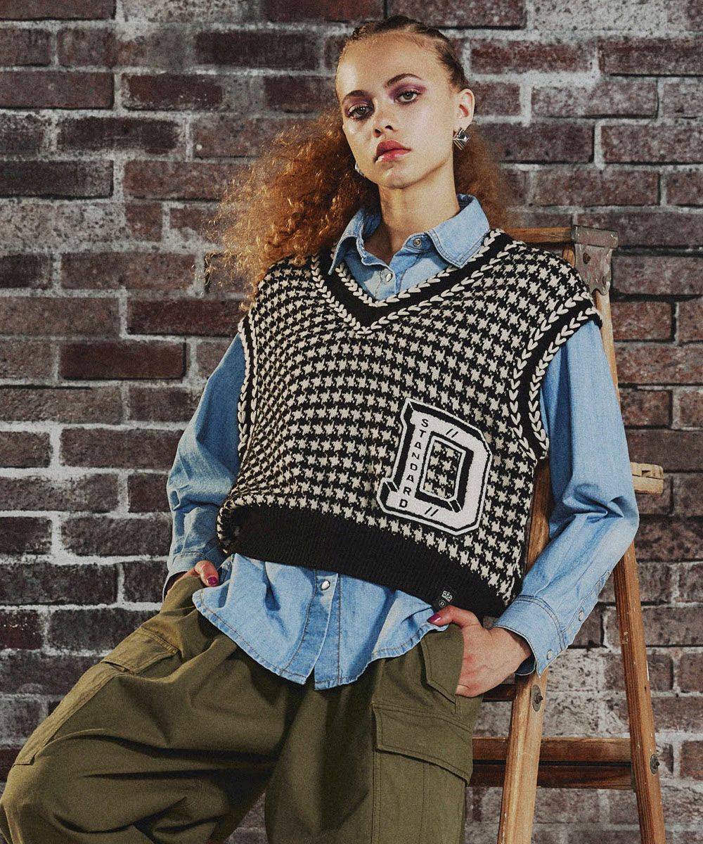 DSC / D로고 자수 니트베스트