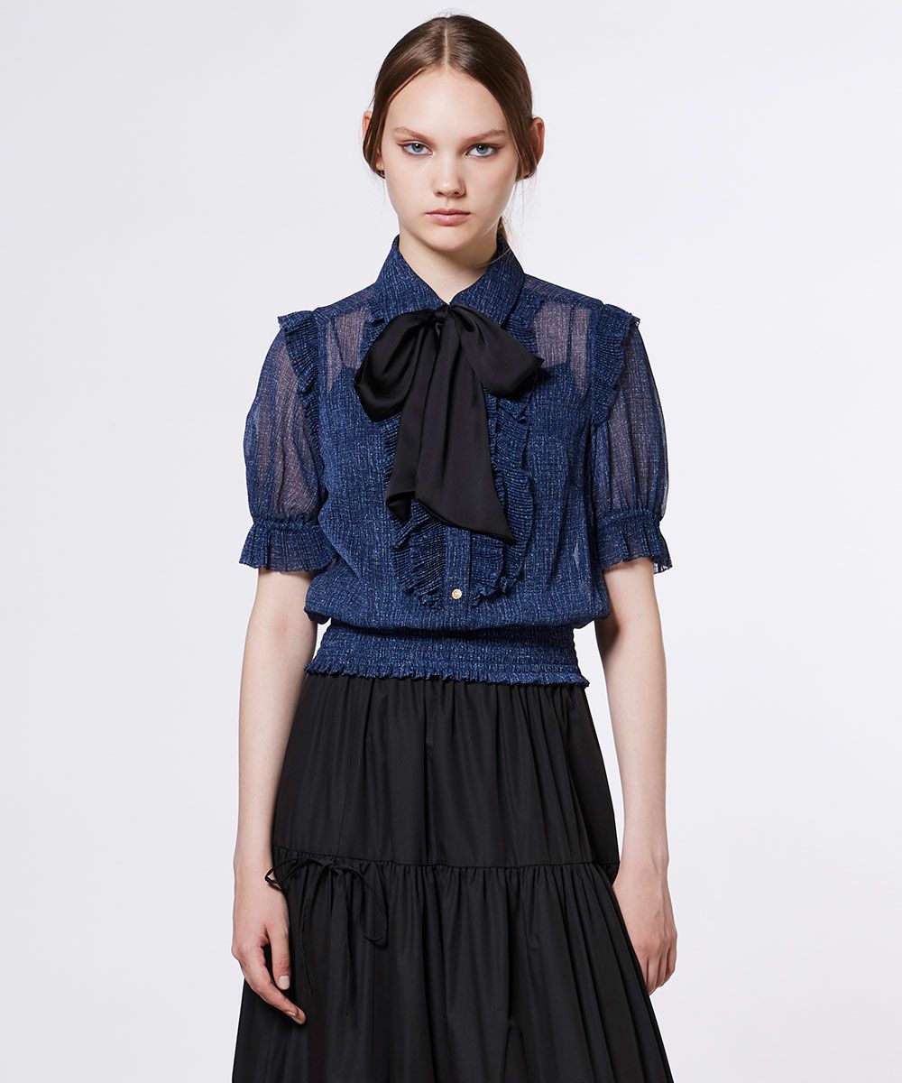 DSC / 데님프린트 쉬폰 블라우스