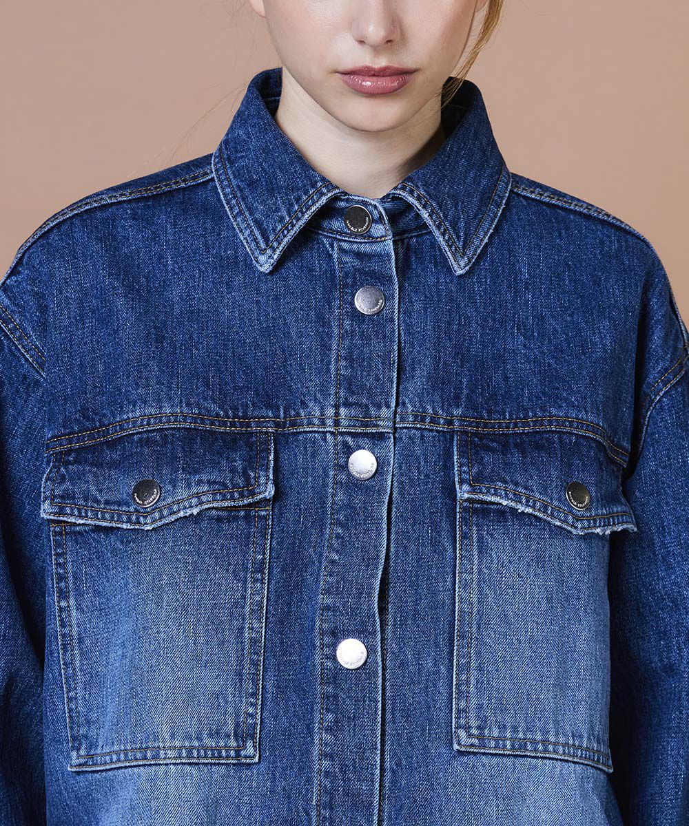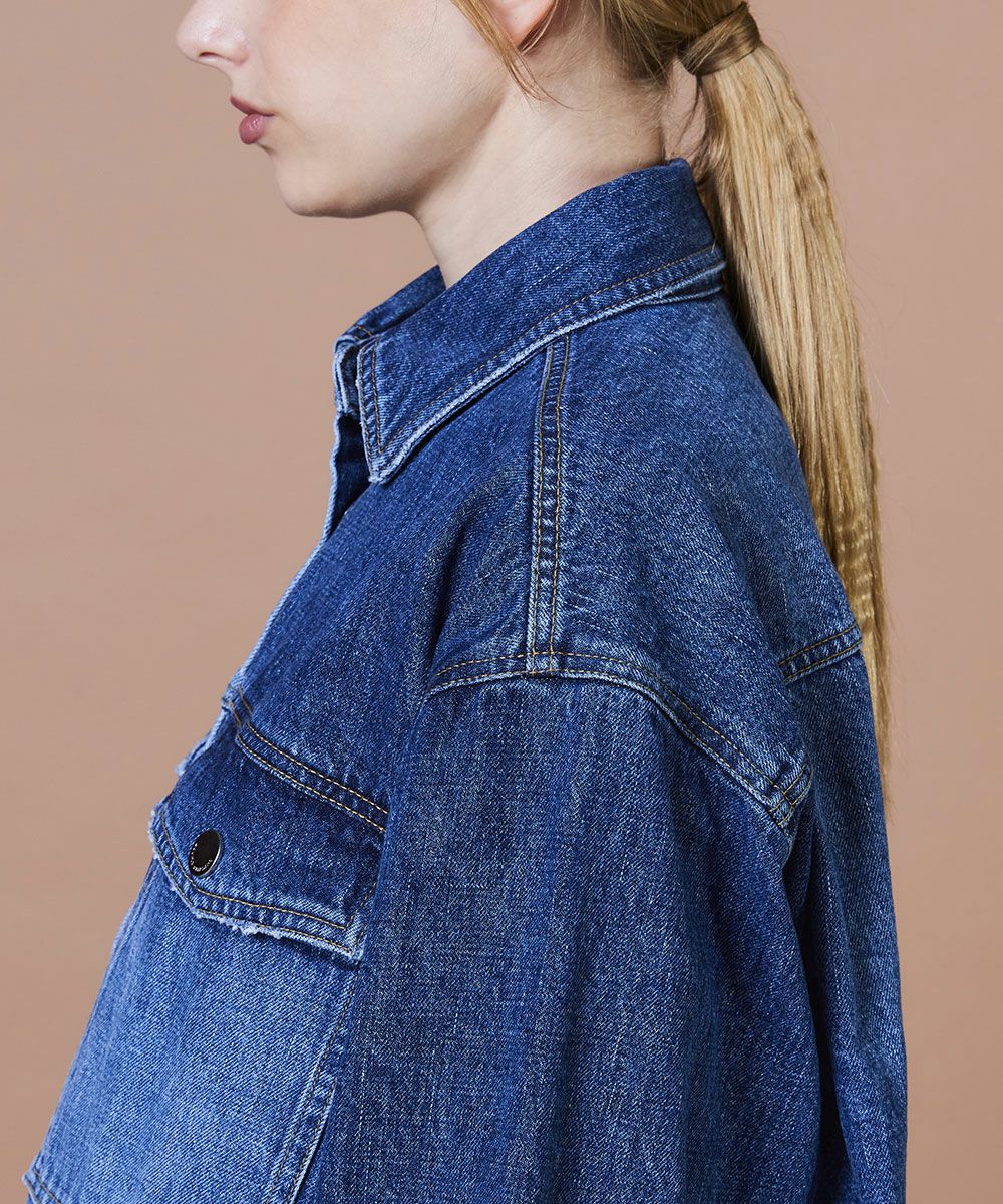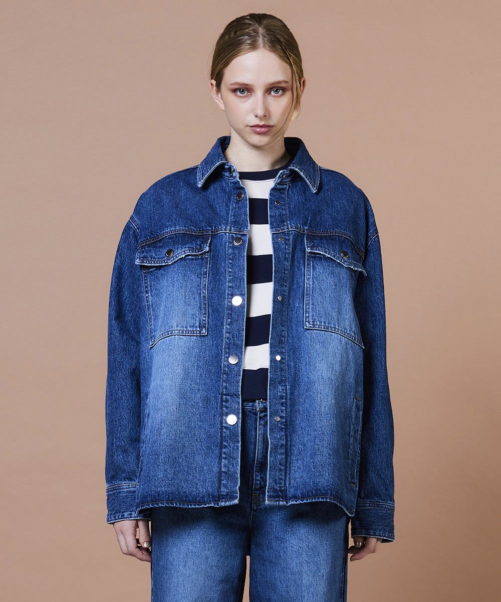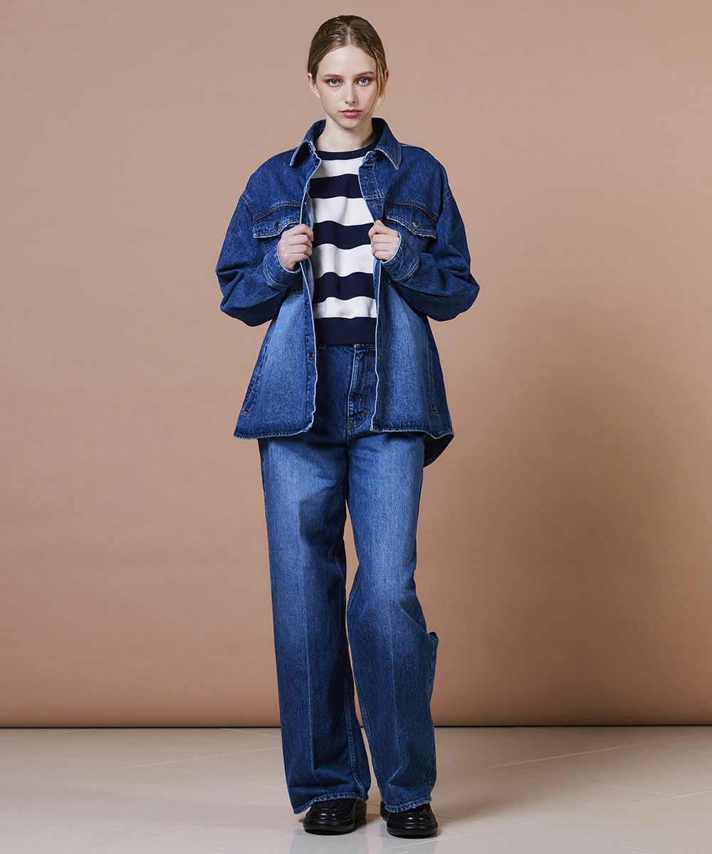 세르비치풍의 요철감과 약텐션으로 짜낸 원단이 빈티지한 데님셔츠. 여유로운 실루엣으로 허리둘레를 자연스럽게 커버해줍니다. 한벌은 물론, 걸쳐입는 용으로도 사용할 수 있는 우수한 점이 매력적. 같은 소재의 데님 팬츠(제품번호:0206381253)와 함께 입으면, 세련된 데님 셋업 스타일을 즐길 수 있습니다.