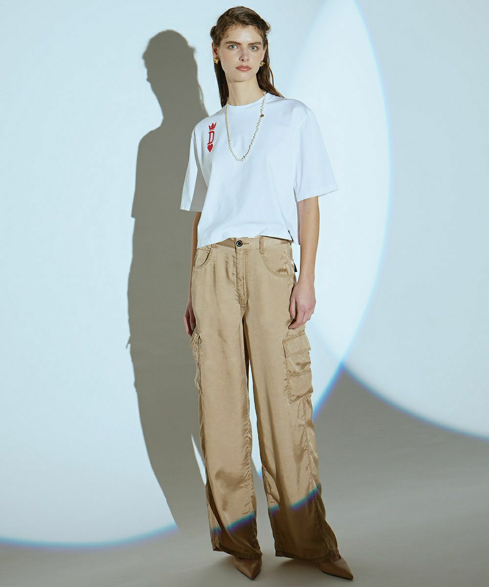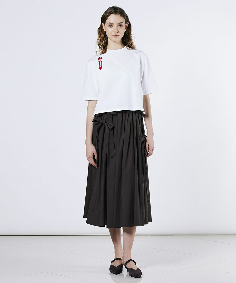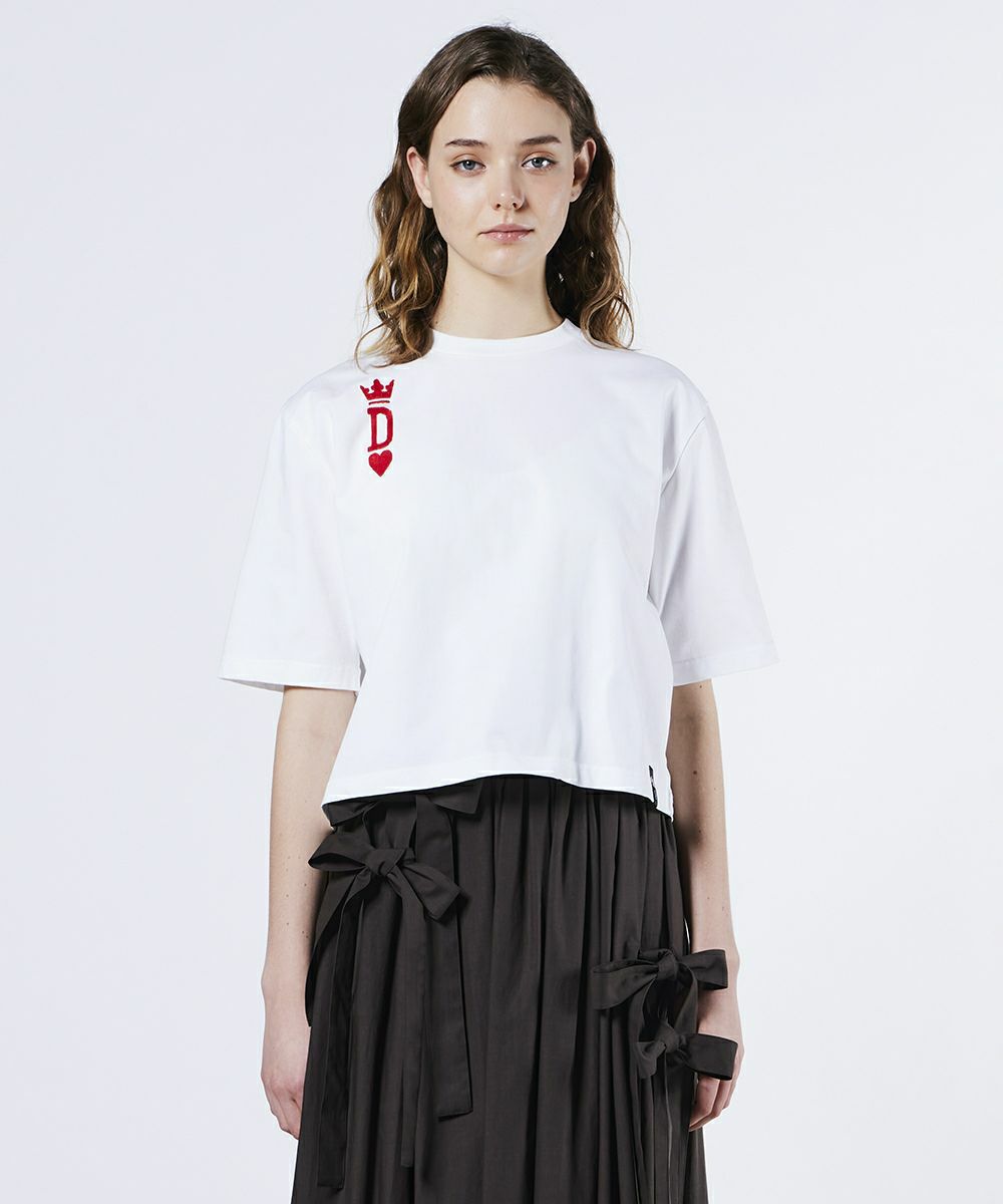 적당히 탄력있는 원단이 캐주얼하지 않고 깔끔한 착용감을 주는 티셔츠. 가슴부분의 장난스러운 트럼프 모티브는 교토의 자수 공장에서 체인 스티치로 마무리되어 섬세한 디테일이 고급스러운 존재감을 발합니다. 실루엣은 넉넉한 편이기 때문에, 어른의 빈틈을 연출. 데일리 사용에 활약하는 한 장입니다.