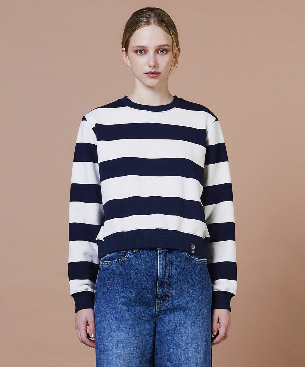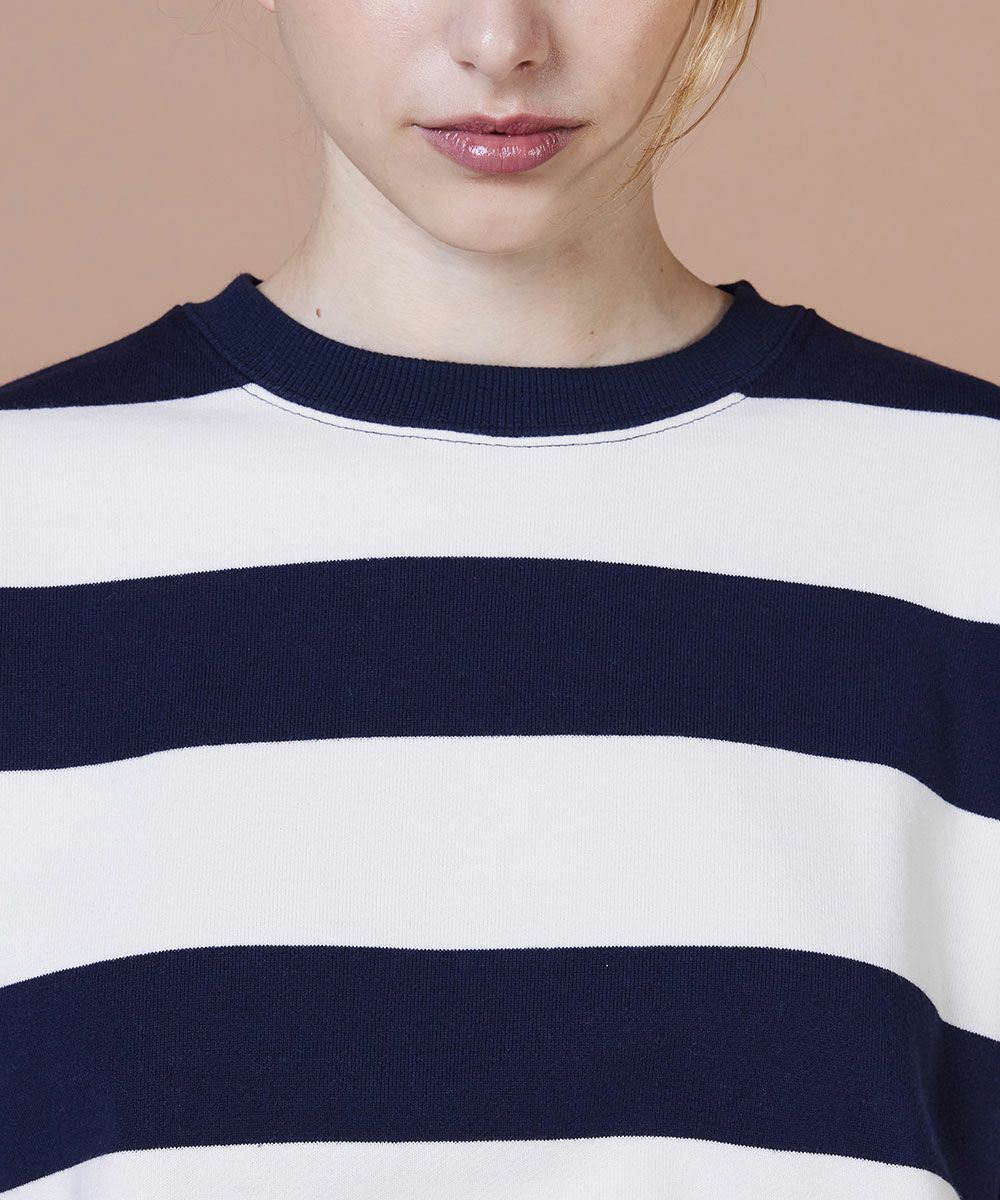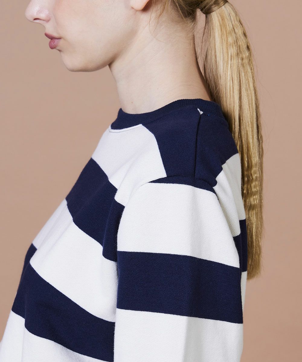 두꺼운 피치의 보더 무늬가 눈길을 끄는, 캐주얼한 무드의 탑. 부드러운 원단감으로 편안한 착용감을 완성했습니다. 색상은 활용하기 쉬운 네이비×오프 화이트와, 차분한 인상의 브라운×그레이 2색 전개. 길이를 다소 짧게 마무리하여 스커트나 팬츠 모두 균형있게 맞출 수 있는 것이 매력 포인트입니다.