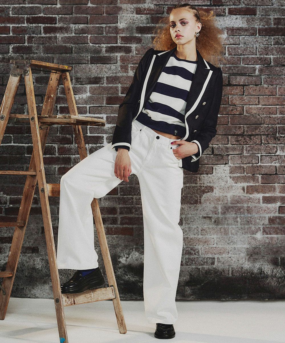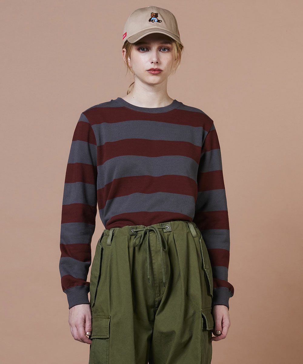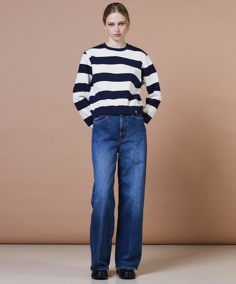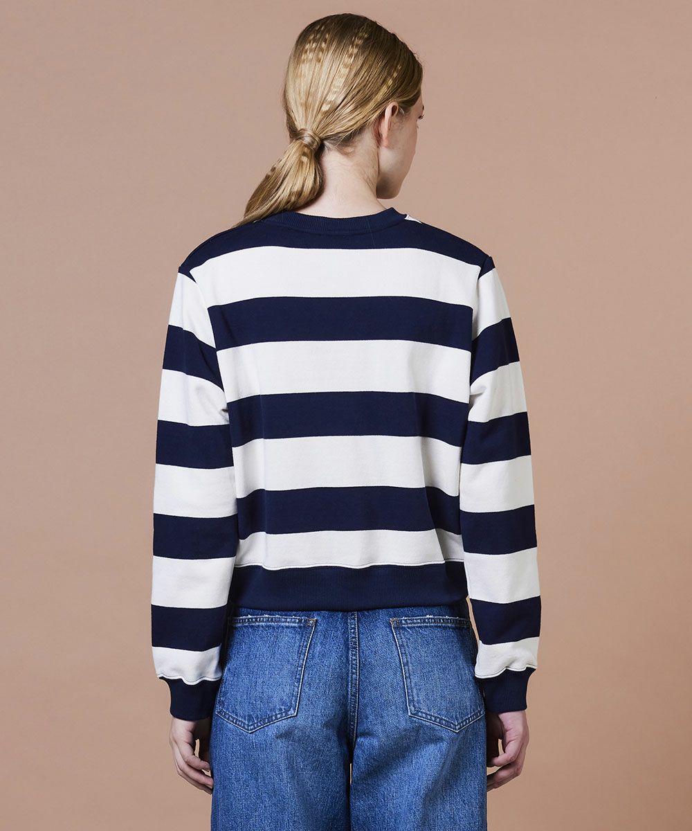 두꺼운 피치의 보더 무늬가 눈길을 끄는, 캐주얼한 무드의 탑. 부드러운 원단감으로 편안한 착용감을 완성했습니다. 색상은 활용하기 쉬운 네이비×오프 화이트와, 차분한 인상의 브라운×그레이 2색 전개. 길이를 다소 짧게 마무리하여 스커트나 팬츠 모두 균형있게 맞출 수 있는 것이 매력 포인트입니다.