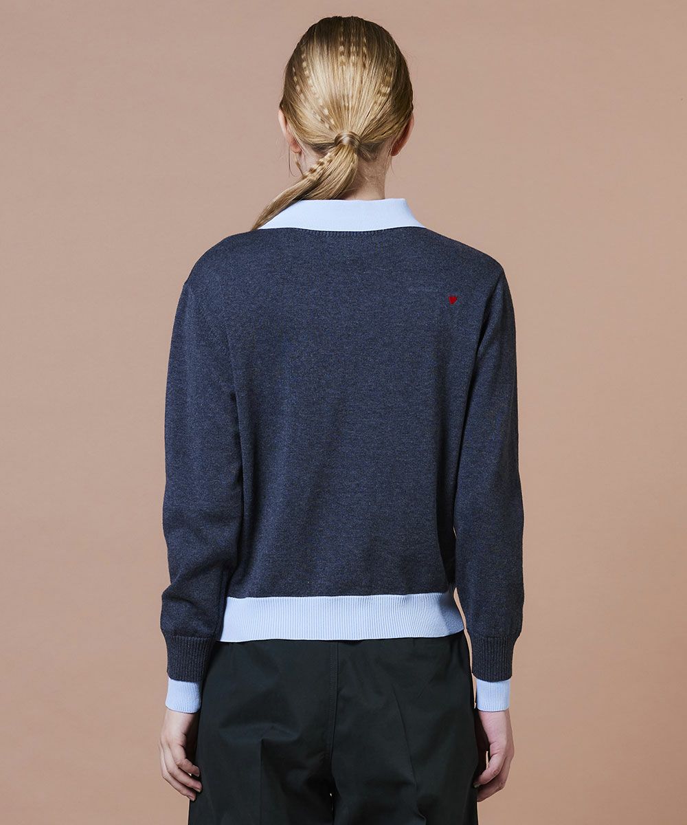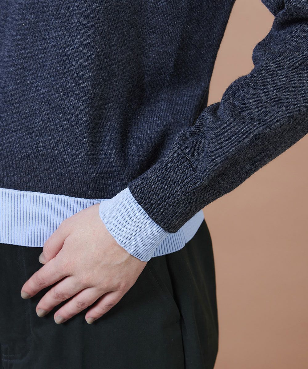 한 장으로 레이어드 스타일을 완성하는 셔츠 도킹 니트. 얇은 실의 코튼과 캐시미어를 혼방하여 부드러운 촉감과 가벼운 착용감을 실현하였습니다. 색소폰 블루 셔츠에, 다크 그레이의 니트를 겹친 배색이 시크하고 세련된 인상으로. 데일리로는 물론, 비즈니스 상황에서도 활약하는 만능 톱입니다.