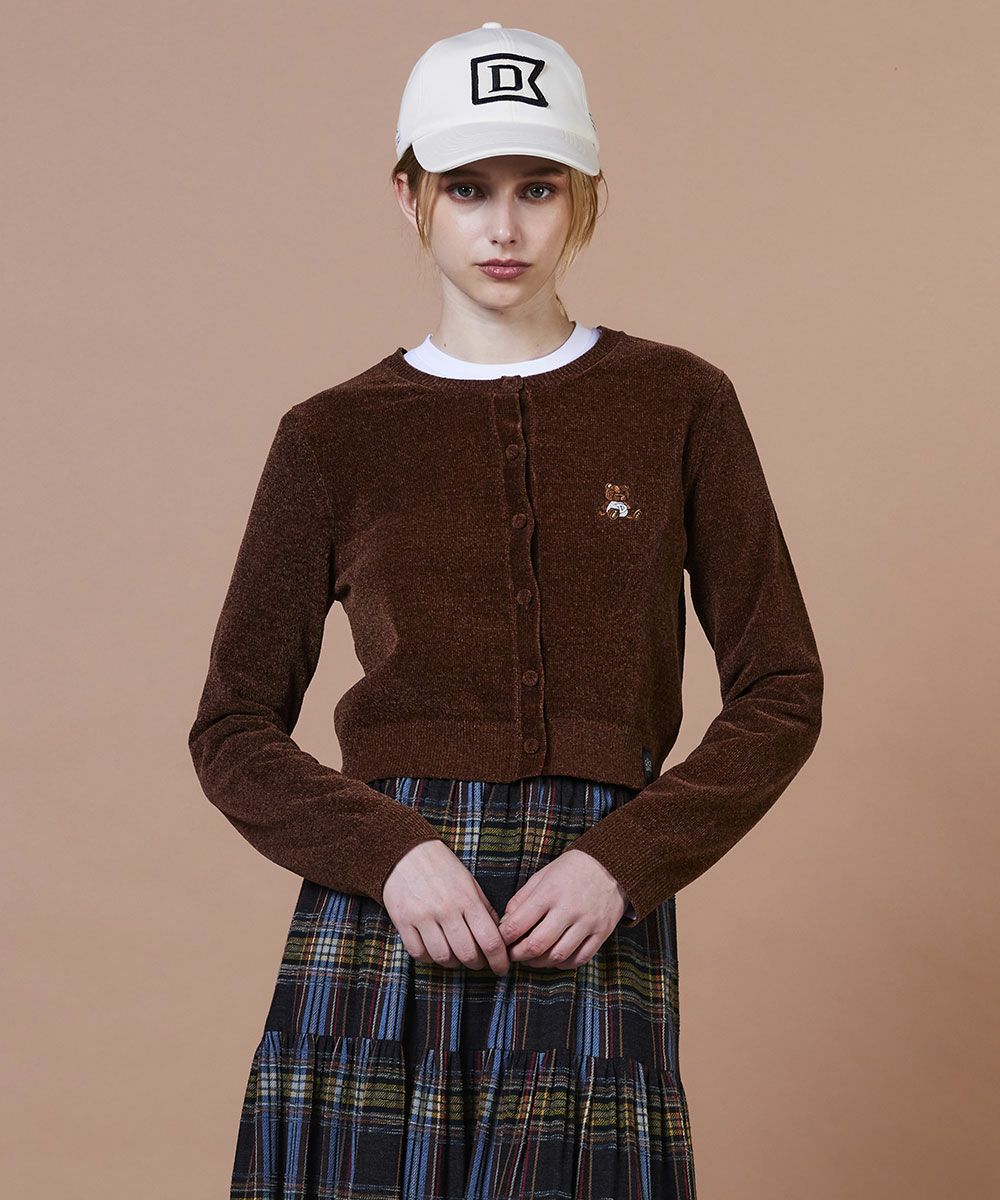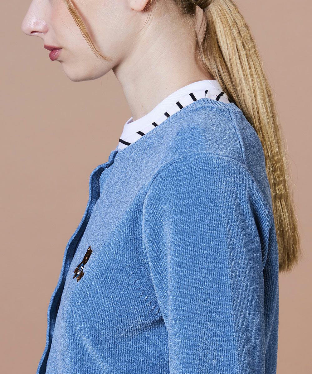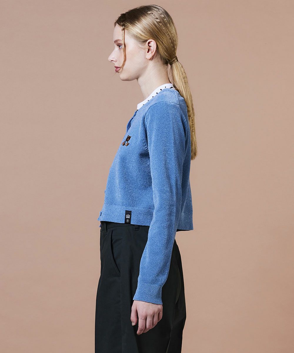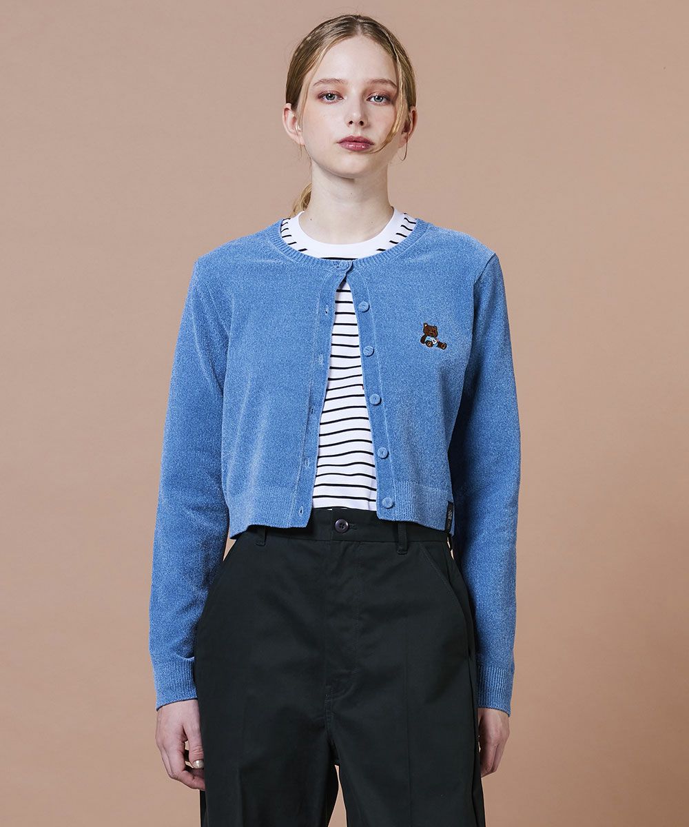 가슴에 장식한 더블스탠다드 오리지널 캐릭터 '니지타로'의 자수가, 자연스러운 포인트가 된 가디건. 폴리에스테르 100% 몰사를 사용하여 고급스러운 광택과 통통한 입체감이 매력입니다. 노카라 디자인으로 목 부분이 깔끔하게 보이는 것도 포인트. 쇼트한 길이로 하의와 균형잡기 좋으며 다양한 스타일링에 매치합니다.
