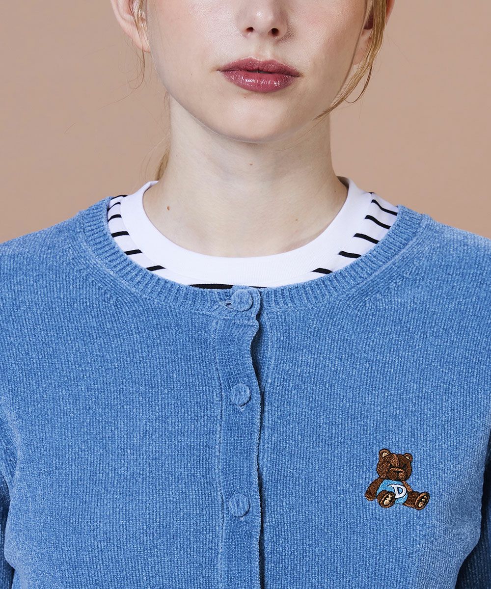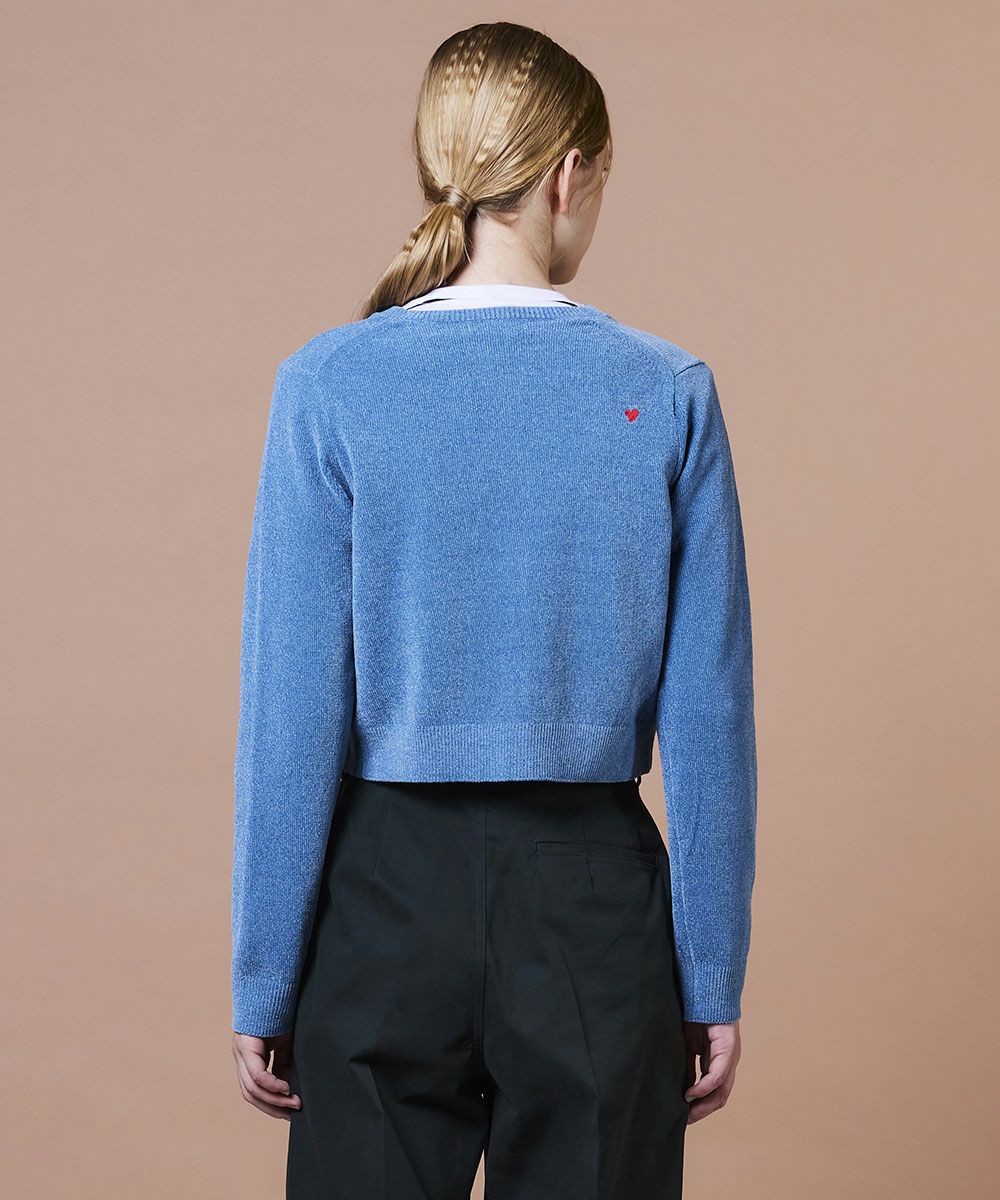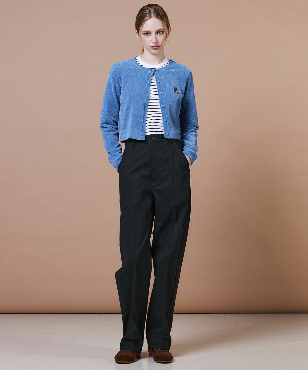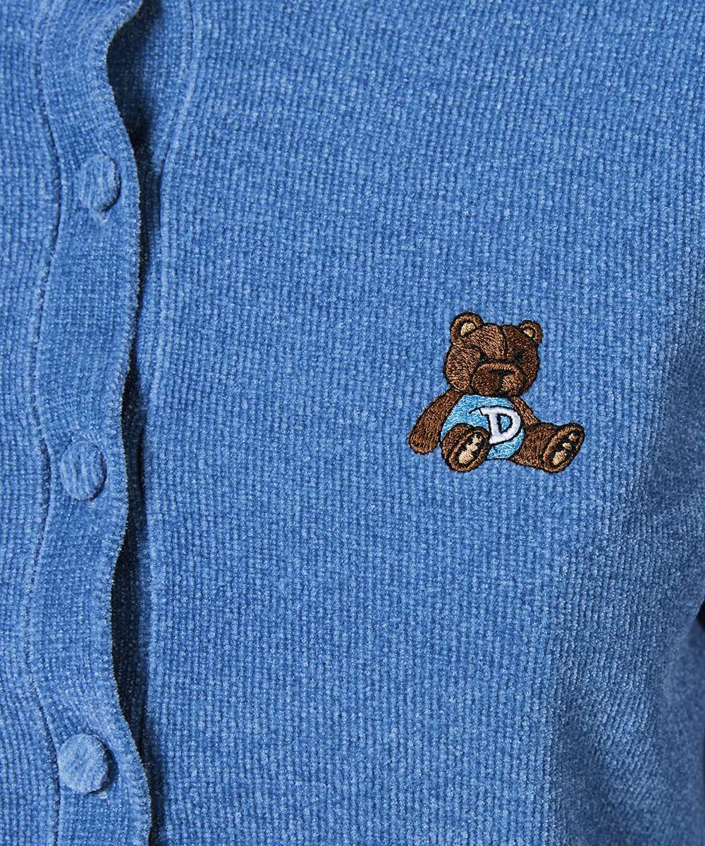가슴에 장식한 더블스탠다드 오리지널 캐릭터 '니지타로'의 자수가, 자연스러운 포인트가 된 가디건. 폴리에스테르 100% 몰사를 사용하여 고급스러운 광택과 통통한 입체감이 매력입니다. 노카라 디자인으로 목 부분이 깔끔하게 보이는 것도 포인트. 쇼트한 길이로 하의와 균형잡기 좋으며 다양한 스타일링에 매치합니다.