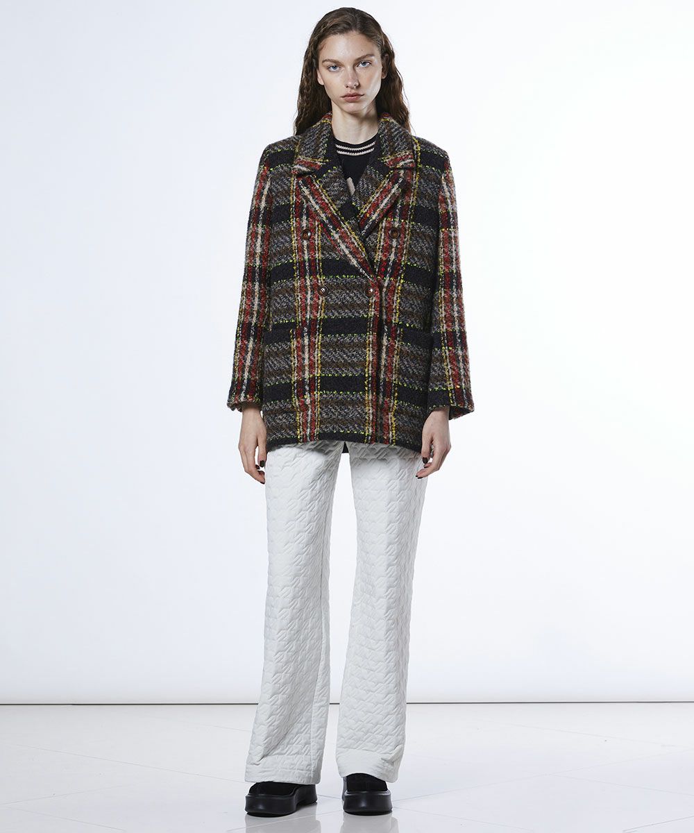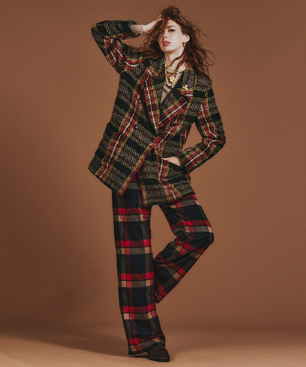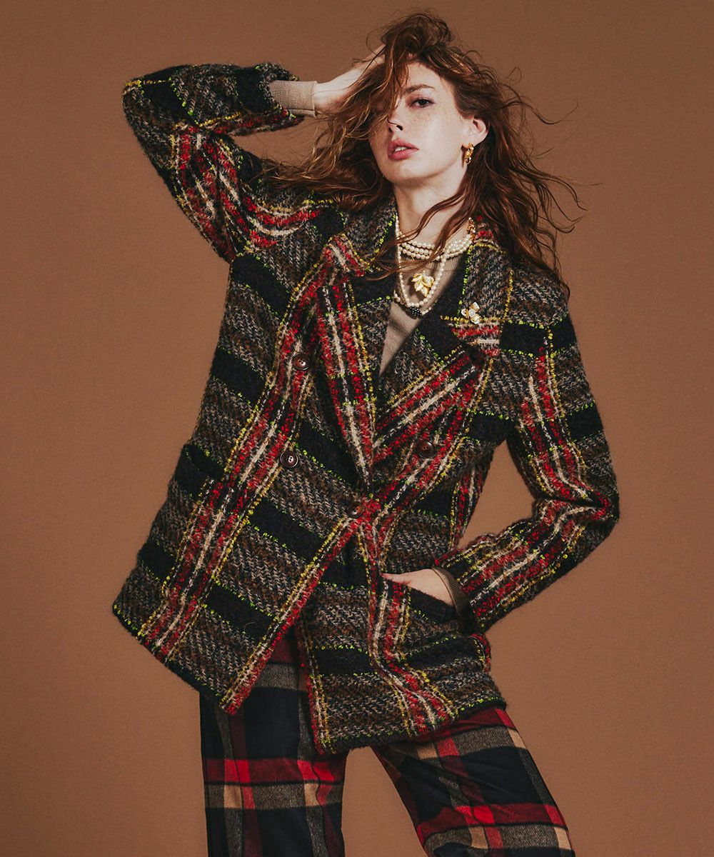 차분한 컬러링의 체크 무늬가 가을·겨울 시즌에 돋보이는 재킷. 보온성과 방한성이 뛰어난 트위드 원단을 사용해, 한 장 걸치기만 해도 따뜻하고 쾌적하게 보낼 수 있습니다. 더블 버튼 디자인으로 캐주얼해지지 않으면서도 고급스럽고 깔끔한 스타일링이 가능한 점도 매력. 심플한 슬랙스와 매치하기만 하면 클래식한 브리티시 스타일을 즐길 수 있는 한 벌입니다.