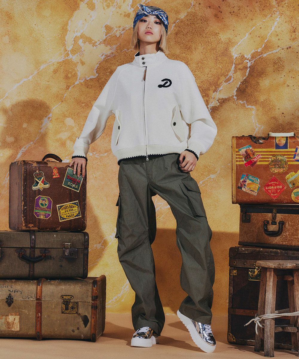 아름다운 표면감과 입체감이 매력인 골판지 소재를 사용한 블루종. 두꺼운 원단으로 본딩한 듯한 육감과 입체적인 실루엣을 구현했습니다. 가슴 부분에는 브랜드 이니셜「D」를 입체적인 로프 자수로 장식해 은은한 악센트를 플러스. 볼륨감 있는 룩이면서도 가벼워 일상에 쉽게 매치할 수 있는 아이템입니다.