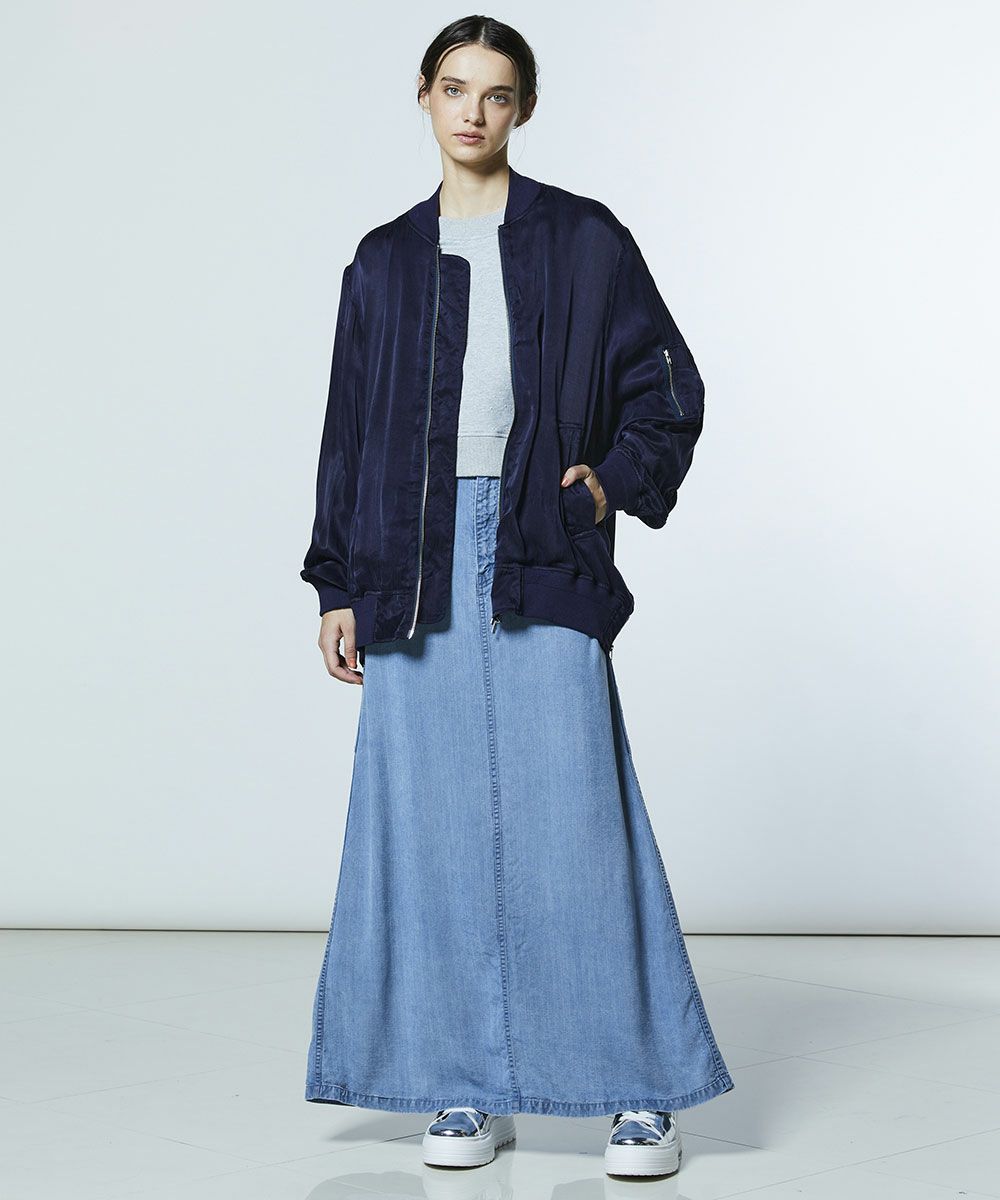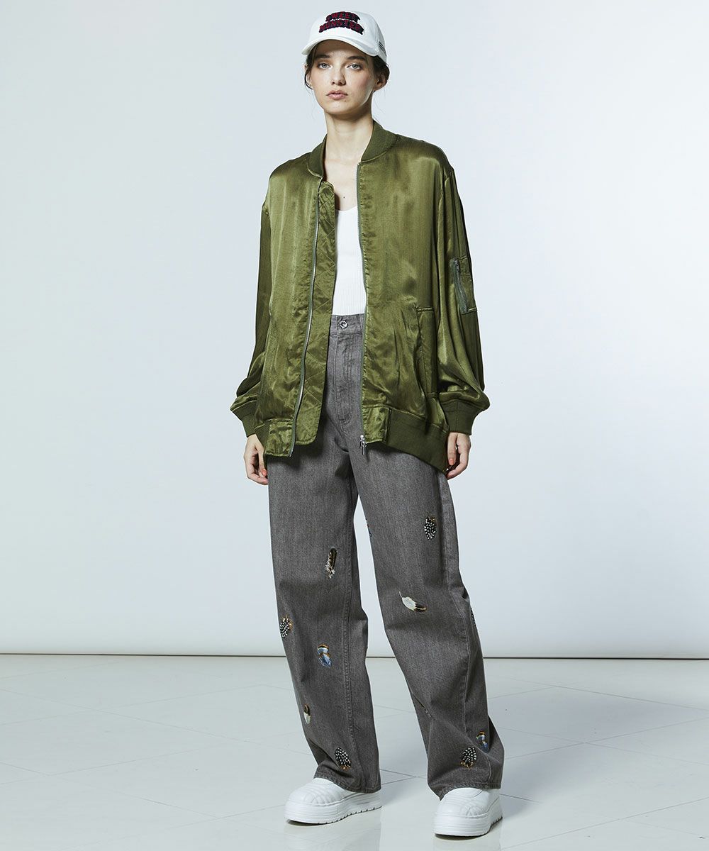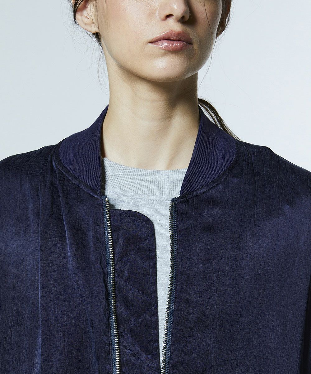 고급스러운 광택감이 매력인 새틴 소재를 사용한 블루종. 워셔 가공을 적용해 적당히 자연스러운 느낌을 더했습니다. 여유로운 실루엣이 허리 주변을 자연스럽게 가려주어, 편안한 착용감을 제공합니다. 캐주얼한 하의와 매치하면 적당히 여성스러움을 더한 스타일링을 즐길 수 있습니다.