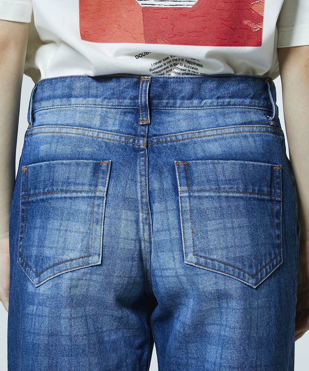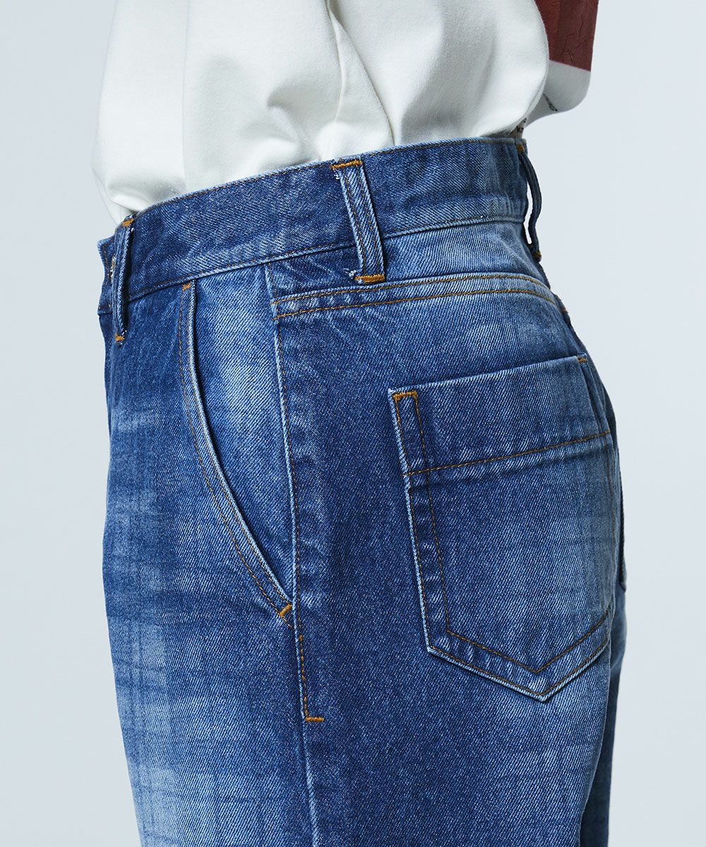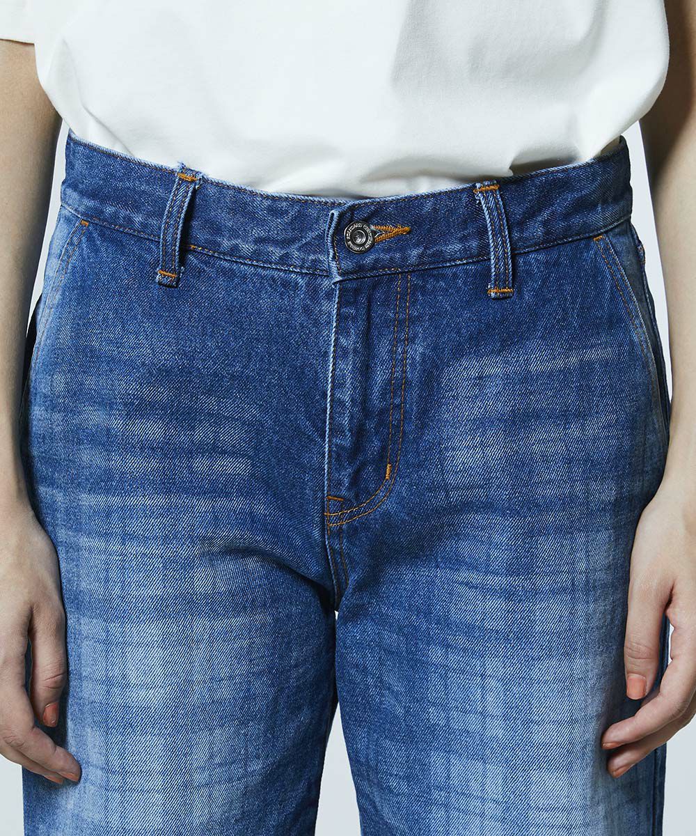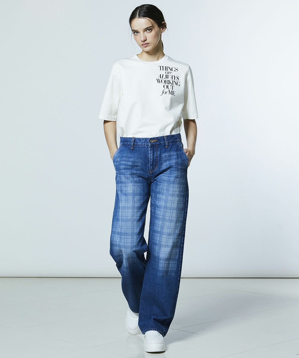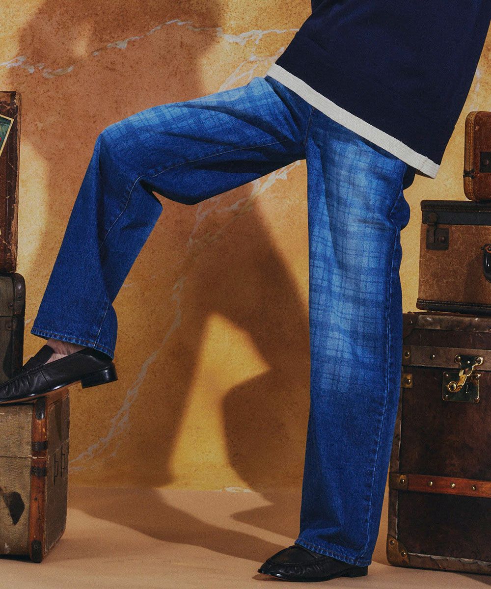 약한 텐션으로 짜여진 원단이 빈티지 같은 느낌을 돋보이게 하는 데님 팬츠. 독특한 울퉁불퉁함에 은은한 체크 무늬를 겹쳐, 개성이 돋보이는 디자인 포인트를 더했습니다. 세로 라인을 깔끔하게 보여주는 스트레이트 실루엣으로 깔끔한 인상을. 색다른 데님은 같은 소재의 재킷(모델 번호: 0205350261)과 매치하면 존재감 있는 세트업 스타일이 완성됩니다.